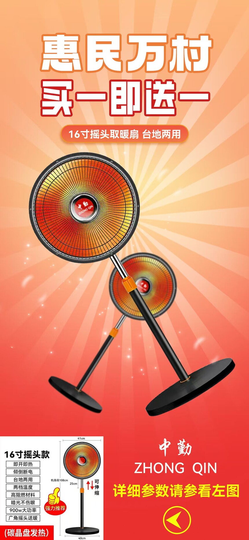 家用取暖器摇头电热扇碳晶盘大太阳台地两用发热即开即热倾倒断电暗光不伤眼