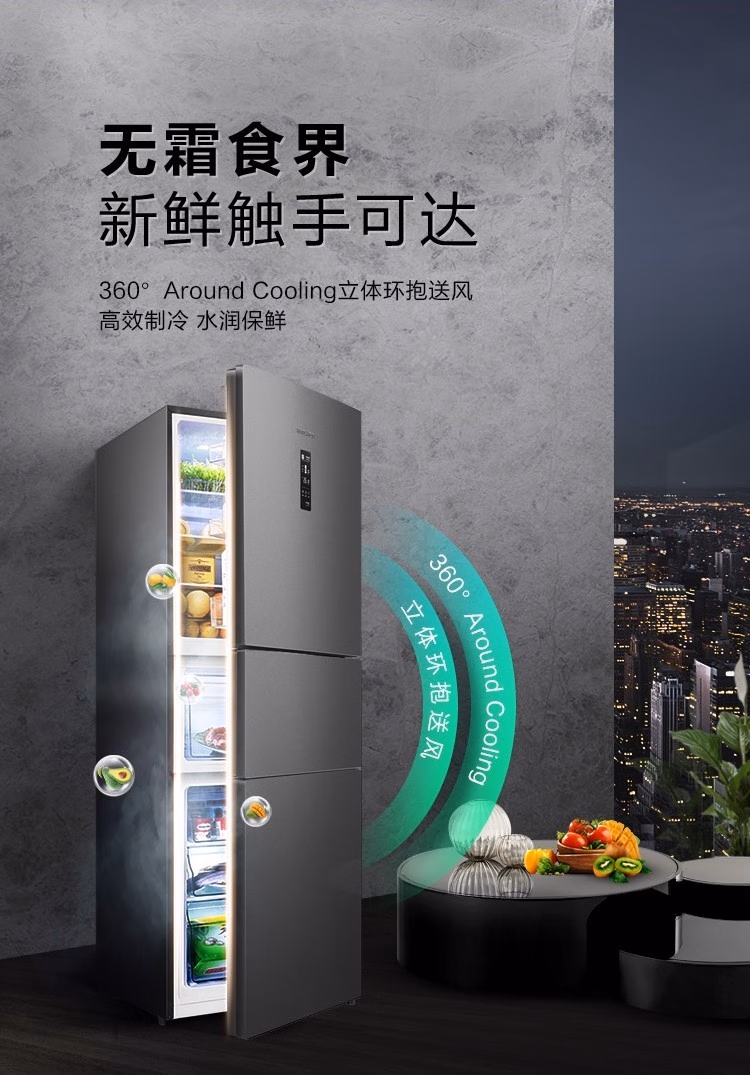 【包邮】容声冰箱252升双变频三开门一级能效BCD-252WD18NP