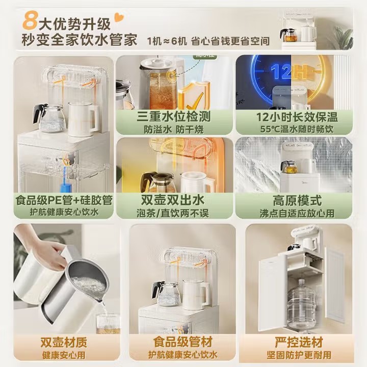 【包邮】美的饮水机家用下置式桶装水办公室温热两用茶吧机双门防尘大储物柜饮水器 【双壶双出水】 温热型 YCR-2356